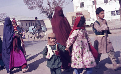 Although this isn't my photo, it's is very similar to sights I saw all the time as a child. Women in burqas and little girls with their heads covered.
